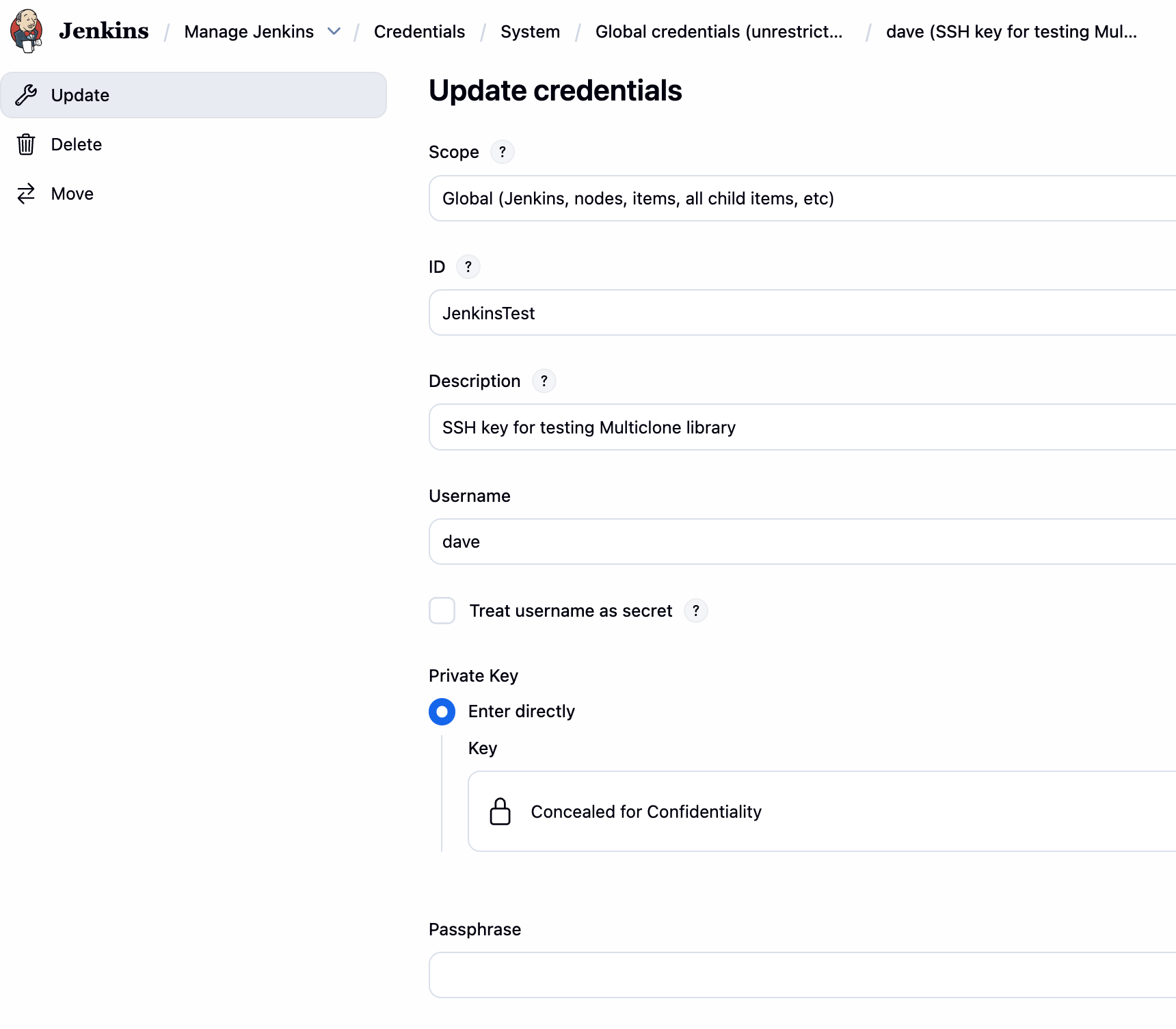 [credentialsId: "JenkinsTest",